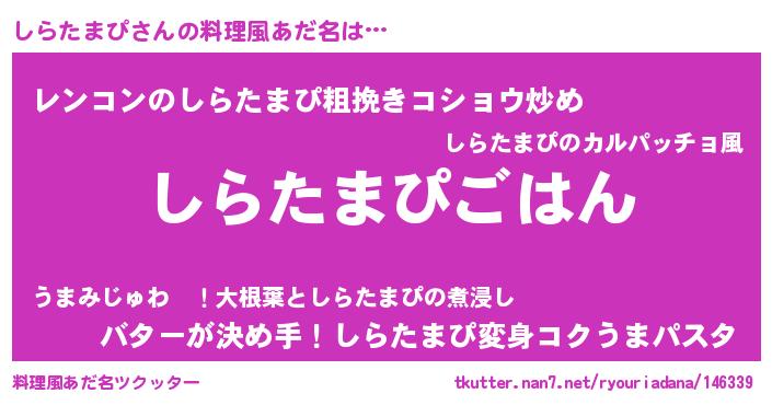 | 胡散臭い通販商品みたいなあだ名 | 『テレビで話題の高麗人参…その名も「しらたまぴ」』 |