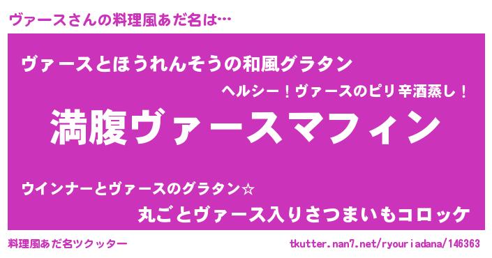 | ヘコむあだ名 | 『ヴァース(笑)』『なまこ酢』 |