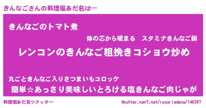 | 意味不明あだ名 | 『自称きんなご』『永久保存きんなご』 |