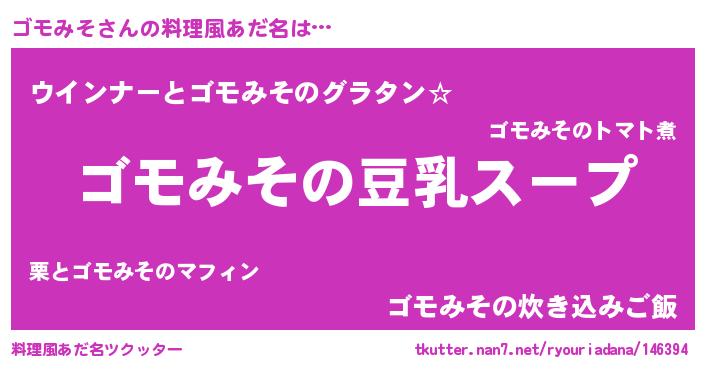 | 男性向けラノベタイトル風あだ名 | 『ダンジョンにゴモみそを求めるのは間違っているだろうか』 |