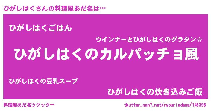 | 意味不明あだ名 | 『住所不定無職ひがしはく(43歳)』 |