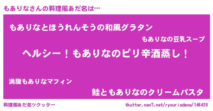 | ヘコむあだ名 | 『もあお』『もありな(遠い目)』 |