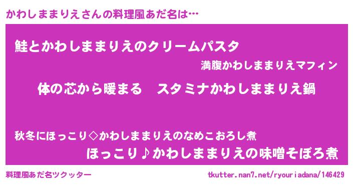 | ファンタジー風あだ名 | 『エターナルカワシママリエー』 |