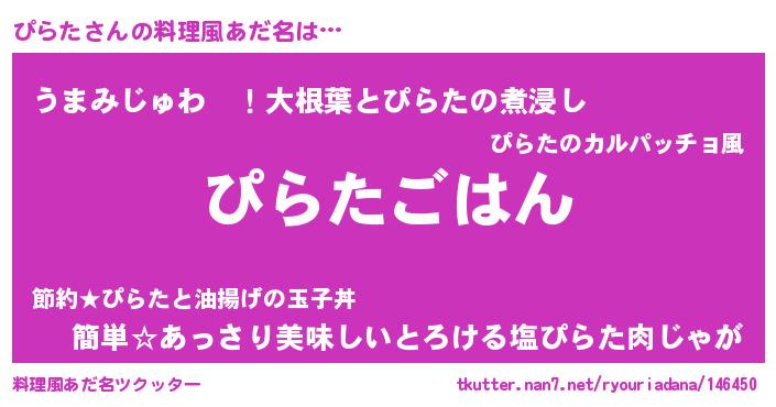 | 男性向けラノベタイトル風あだ名 | 『ピラタスレイヤー』『魔弾の王とぴらた』 |