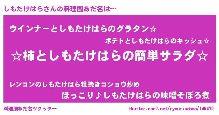 | 胡散臭い通販商品みたいなあだ名 | 『世界が平和になる高級そうな皿…その名も「しもたけはら」』 |