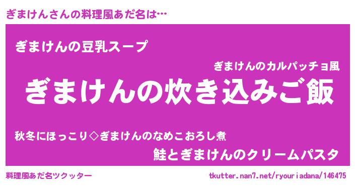 | 胡散臭い通販商品みたいなあだ名 | 『伝統あるサプリメント…その名も「ぎまけん」』 |