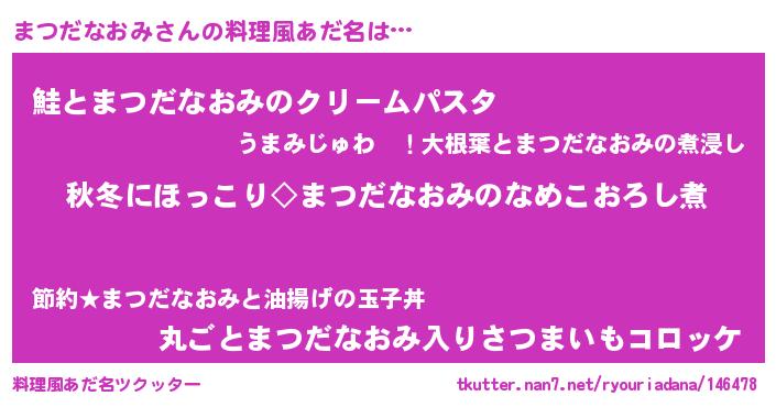 | 男性向けラノベタイトル風あだ名 | 『まつだなおみに滅ぼされるだけの簡単なお仕事です』 |