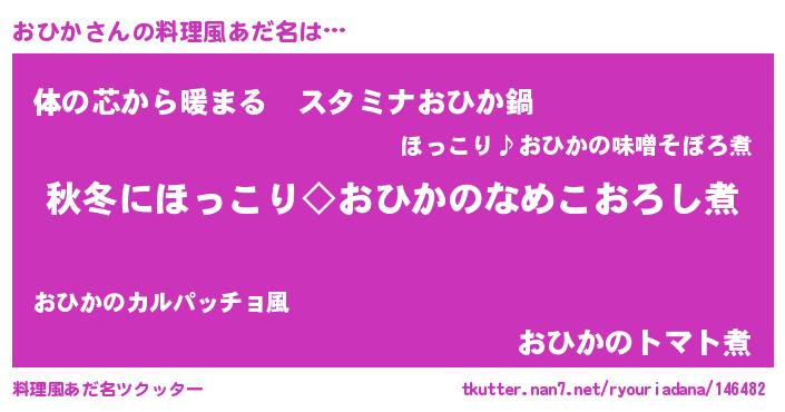| 意味不明あだ名 | 『おひかフォーエバー』『ペロリンおひか』 |