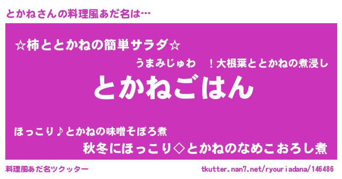 ヘコむあだ名 | 『つくし』『とかにゅー』 |