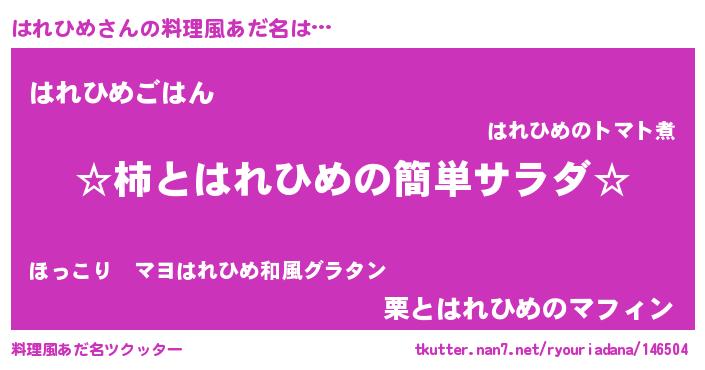 | 男性向けラノベタイトル風あだ名 | 『緋弾のハレヒメ』『ハレヒメスレイヤー』 |