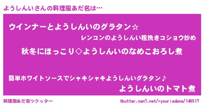 | ピコ太郎風あだ名 | 『ピヨ次郎』『ヨヨ太郎』『ヨウ太郎』 |