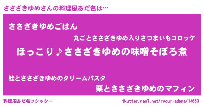 | 胡散臭い通販商品みたいなあだ名 | 『必ず成功するブレスレット…その名も「ささざきゆめ」』 |