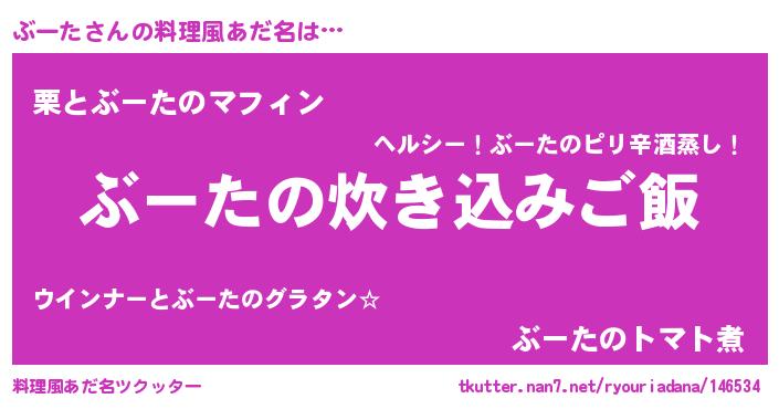 | ヒーロー風カッコイイあだ名 | 『慈愛の使者ぶーた』『超時空戦士ブータ』 |