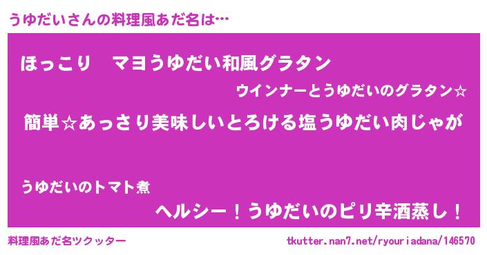 | 意味不明あだ名 | 『永久保存うゆだい』『自称うゆだい』 |