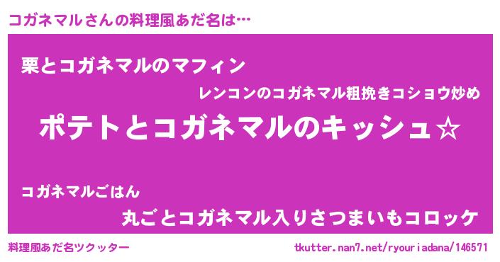 | 男性向けラノベタイトル風あだ名 | 『コガネマルの嫁は女の子じゃないと思った?』 |
