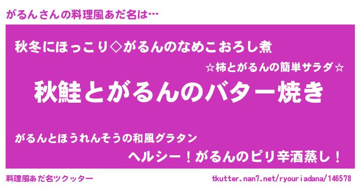 | 女子向けラノベタイトル風あだ名 | 『がるんの契約王妃』『闇のがるん』 |