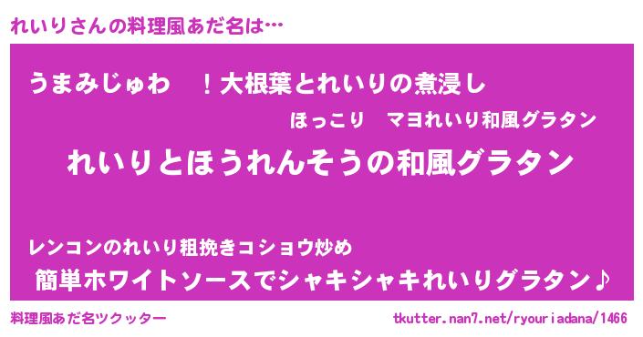 | 恥ずかしいあだ名 | 『れいっちょ』『レイリンリン』 |