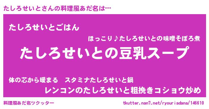| 胡散臭い通販商品みたいなあだ名 | 『信頼と実績のサプリメント…その名も「たしろせいと」』 |