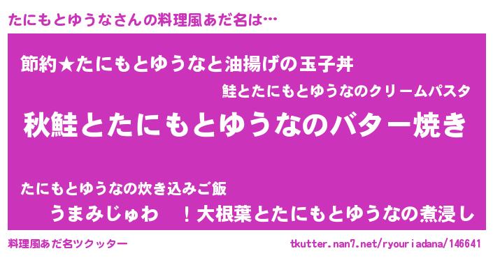 | ヒーロー風カッコイイあだ名 | 『ネオタニモトユウナ』『仮面タニダー』 |