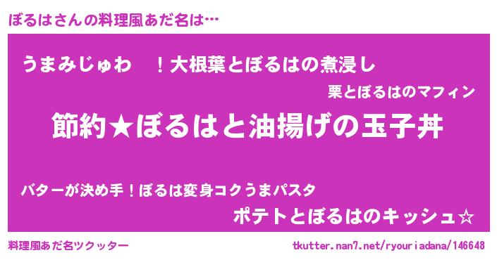 | 胡散臭い通販商品みたいなあだ名 | 『モテモテ間違いなしブレスレット…その名も「ぼるは」』 |