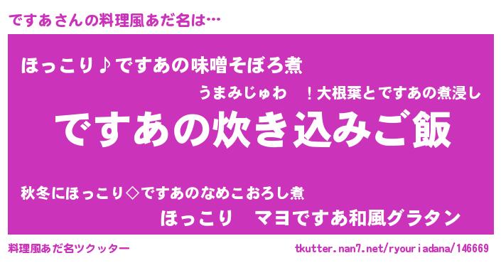 | ヘコむあだ名 | 『ですふぇ~』『つくし』『です太郎』 |