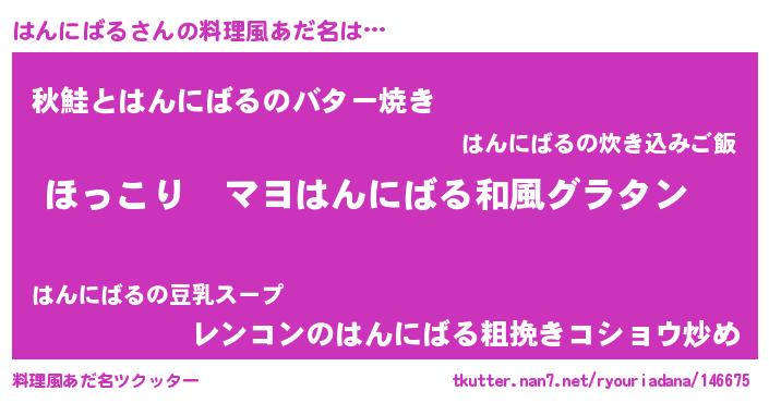 | 男性向けラノベタイトル風あだ名 | 『この素晴らしい世界にはんにばるを!』 |