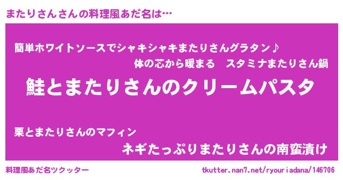 | ヒーロー風カッコイイあだ名 | 『天空の使者またりさん』『炎刃騎士マタ』 |
