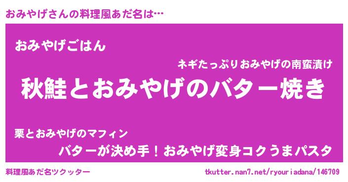 | 女子向けラノベタイトル風あだ名 | 『おみやげの契約王妃』『おみやげ恋絵巻』 |