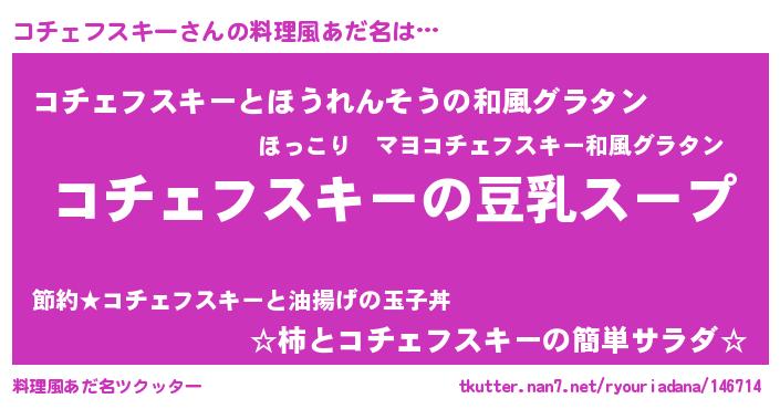 | 女子向けラノベタイトル風あだ名 | 『コチェフスキーは平凡を望む』 |