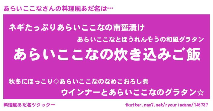 | 胡散臭い通販商品みたいなあだ名 | 『モテモテ間違いなし霊験あらたかなお札…その名も「あらいここな」』 |