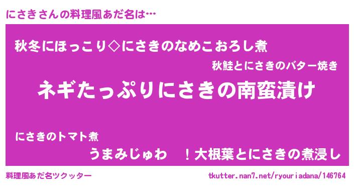 | ヘコむあだ名 | 『にさもー』『なまこ酢』『にさっ子』 |