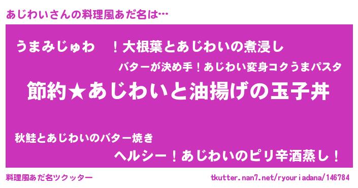| ファンタジー風あだ名 | 『アジフェル』『エターナルアジワイー』 |