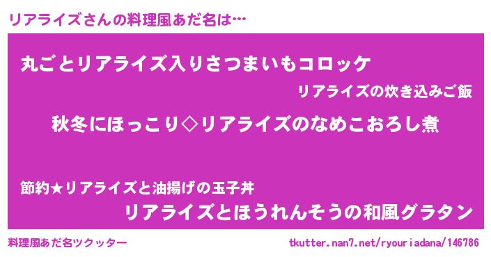 | 恥ずかしいあだ名 | 『プリティーリアライズ』『リアリンリン』 |