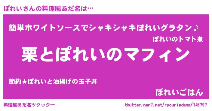 | 胡散臭い通販商品みたいなあだ名 | 『信頼と実績のサプリメント…その名も「ぽれい」』 |