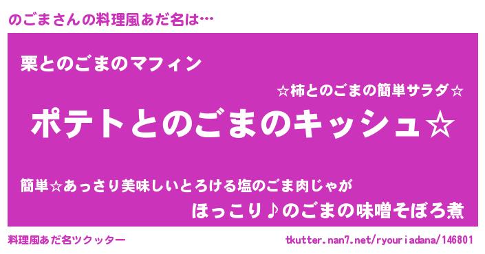 | 女子向けラノベタイトル風あだ名 | 『のごまの卵を拾いまして』 |