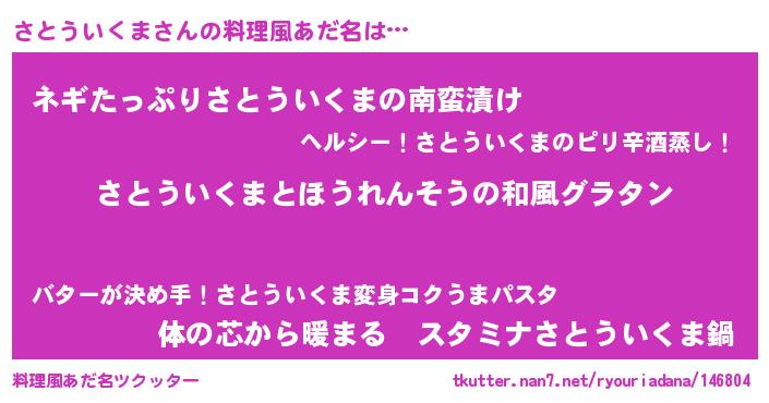 | 女子向けラノベタイトル風あだ名 | 『さとういくまの玉の輿計画!』 |