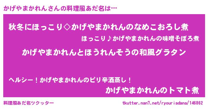 | ヘコむあだ名 | 『かげもー』『豆乳』『かげを』 |