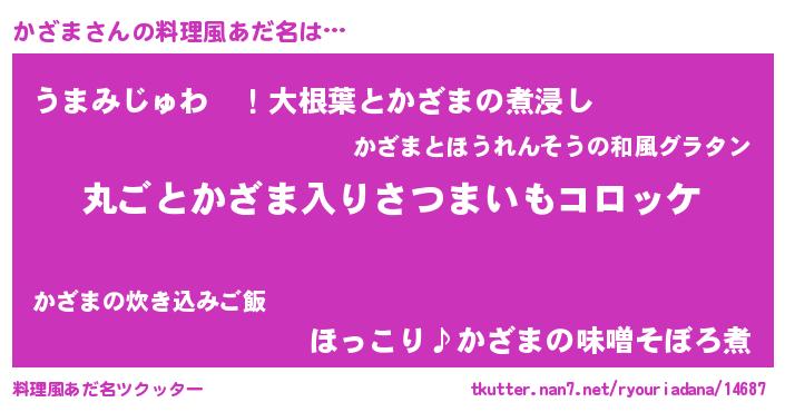 | 男性向けラノベタイトル風あだ名 | 『この素晴らしい世界にかざまを!』 |
