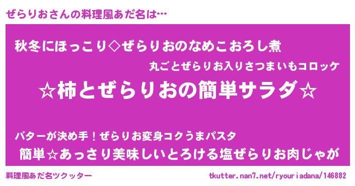 | 意味不明あだ名 | 『永久保存ぜらりお』『自称ぜらりお』 |