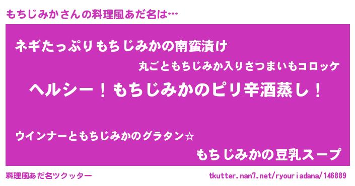 | 男性向けラノベタイトル風あだ名 | 『Re:もちじみかから始める異世界生活』 |