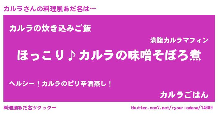 | 意味不明あだ名 | 『ペロリンカルラ』『なめこ科カルラ属』 |