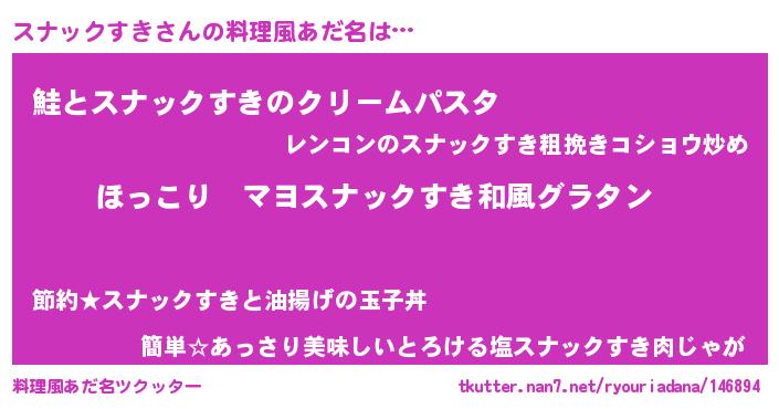 | ヘコむあだ名 | 『スナックすき(笑)』『スナにー』 |