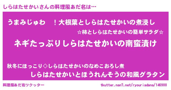 | 胡散臭い通販商品みたいなあだ名 | 『億万長者になれる霊験あらたかなお札…その名も「しらはたせかい」』 |