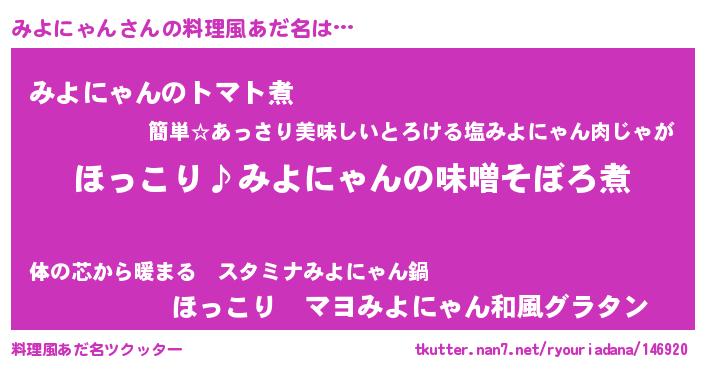 | ヘコむあだ名 | 『みよにゅー』『みよにゃん(遠い目)』 |