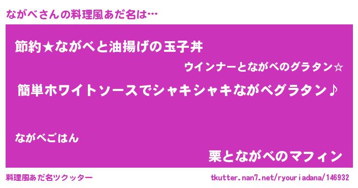 | 女子向けラノベタイトル風あだ名 | 『ながべ様がみてる』『ながべ伯爵の花嫁』 |