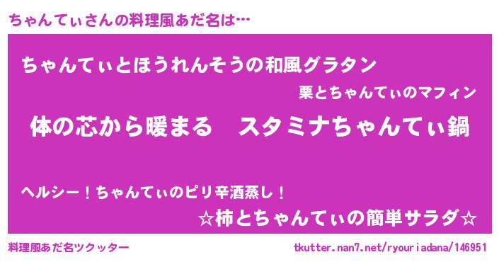 | 意味不明あだ名 | 『ちゃんてぃフォーエバー』 |
