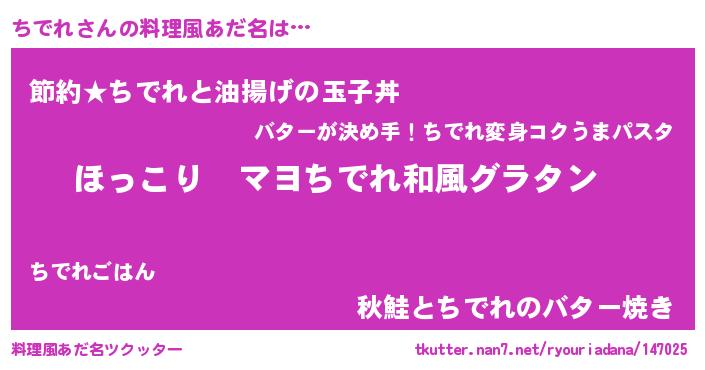 | 男性向けラノベタイトル風あだ名 | 『この素晴らしい世界にちでれを!』 |