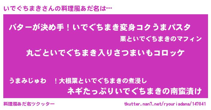 | 男性向けラノベタイトル風あだ名 | 『魔弾の王といでぐちまき』 |