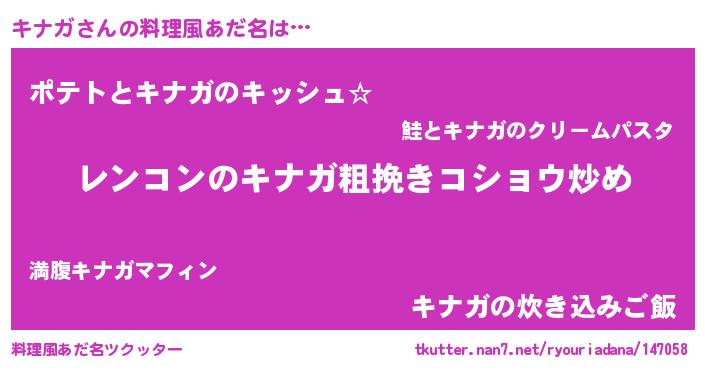 | 女子向けラノベタイトル風あだ名 | 『キナガなんてお断りですっ。』 |