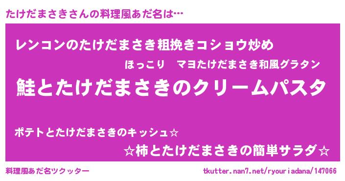 | ヘコむあだ名 | 『たけ太郎』『たけにー』『豆乳』 |